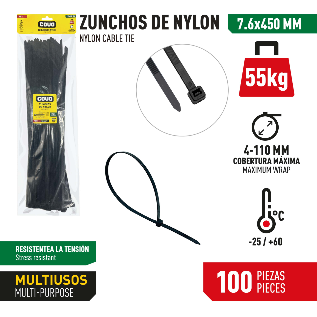 DESCRIPCION: zunchos de nylon 7.6 x 450mm de 25 pzs