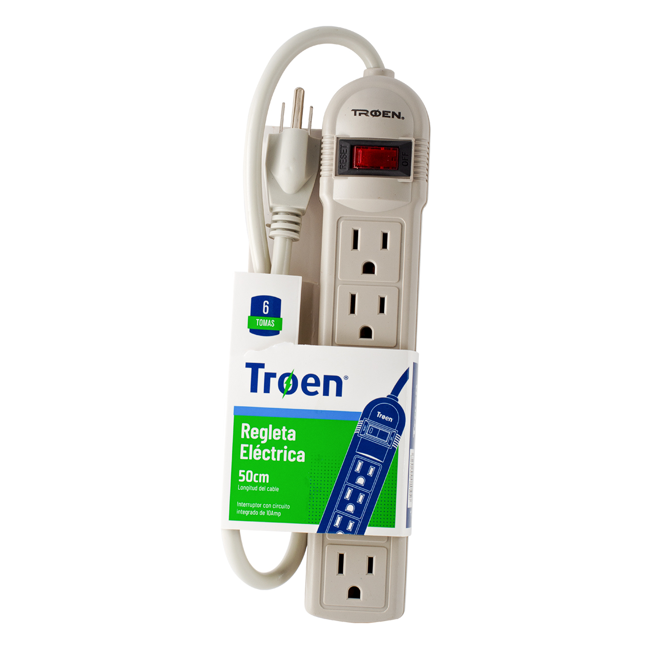 regleta electrica 50cm, 6 contactos